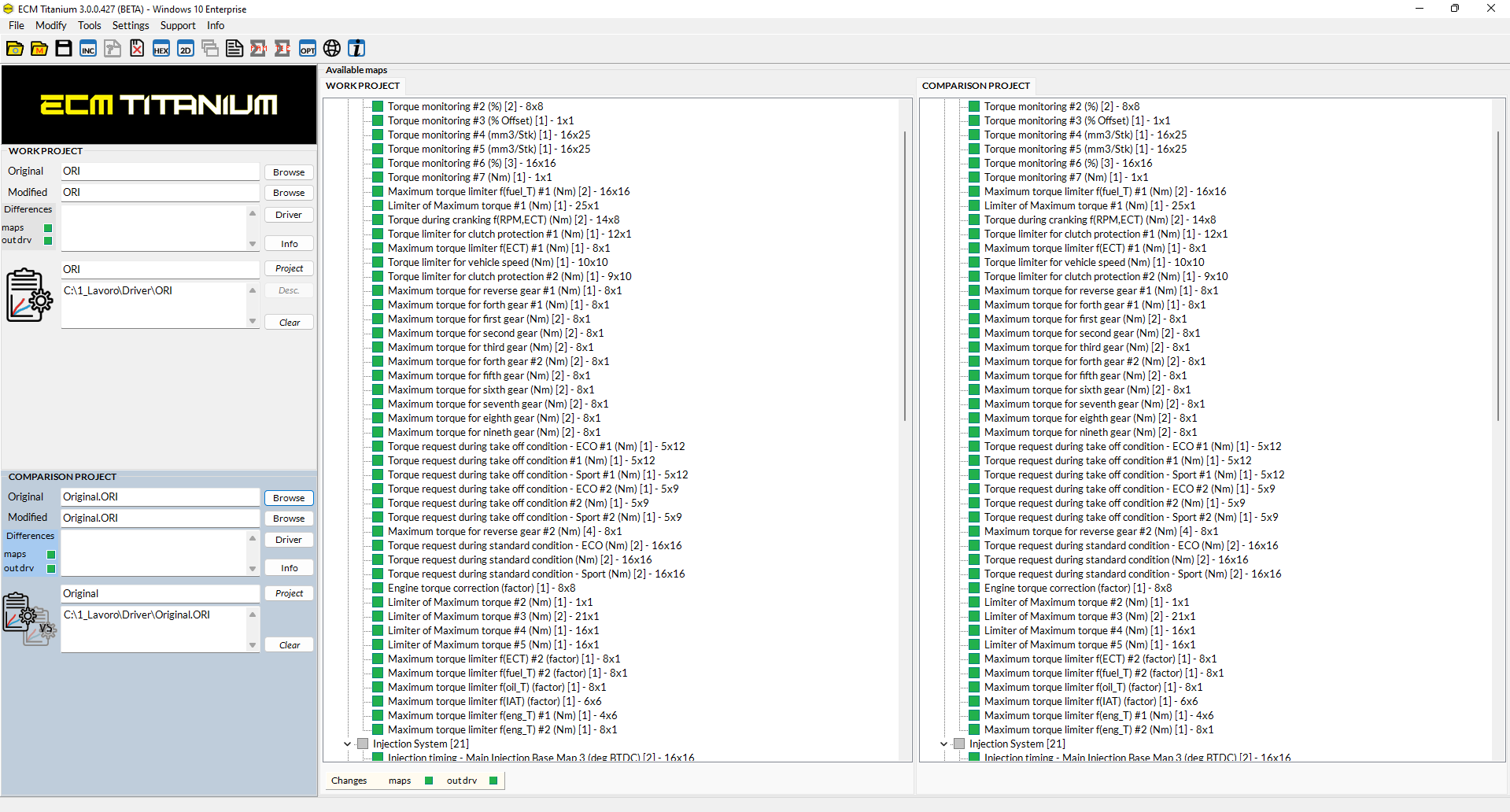 Map Management: Automatically detects and organizes ECU maps (injection, torque, ignition, boost, etc.) in a clear and structured layout, making it easy to identify and edit specific parameters.