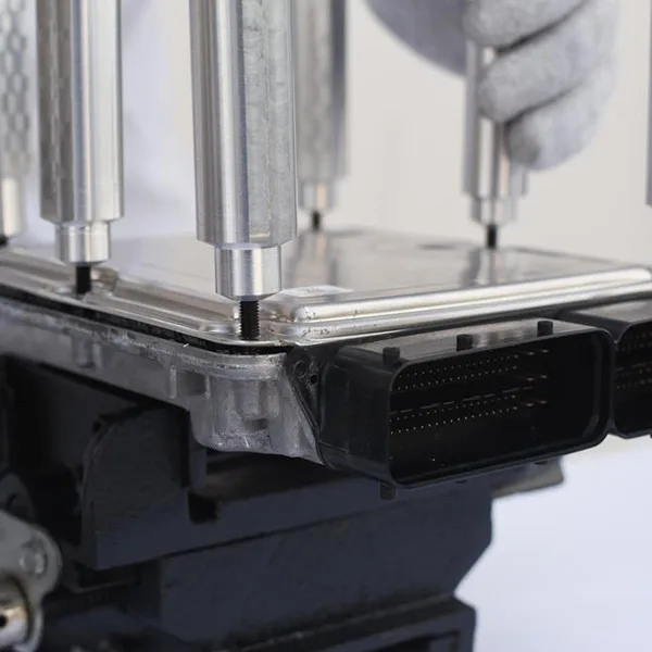 The MAGP0.5.14 – ECU Cover Extractor is designed to streamline the opening process of BOSCH ECUs. Depending on the specific ECU cover, either four or six of these extractors are needed simultaneously. They are securely attached in place of the ECU screws. This enables users to remove the cover without causing any damage or deformation.