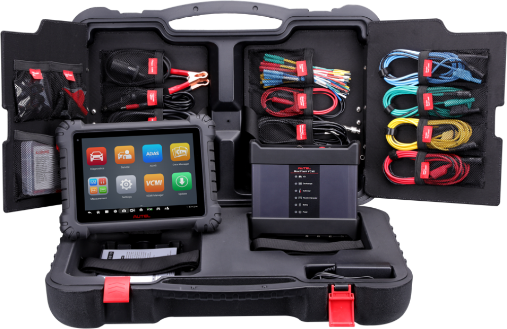 The  MaxiSys Ultra EV  is a  new generation of intelligent diagnostics for electric,  hybrid, gas, and diesel vehicles. The Ultra EV provides a comprehensive analysis of electric and hybrid vehicles with expanded topology mapping and battery pack analysis that can be performed via OBD or directly with included specialty cables and jumpers. The Ultra EV screen displays detailed graphics and in-depth connection guidance to provide safe and secure testing. The 12.9-inch Ultra EV touchscreen tablet comes equipped with the MaxiFlash VCMI (5-in-1) measurement device, Bluetooth-enabled vehicle communication interface and J2534 pass-thru programming device, and a dedicated EVDiag box.