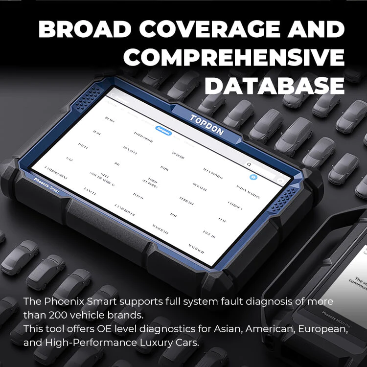 • The Phoenix Smart supports full system fault diagnosis of more than 200 vehicle brands. This tool offers OE-Level diagnostics for the most common Asian, American, and European models, and many other vehicle models.
